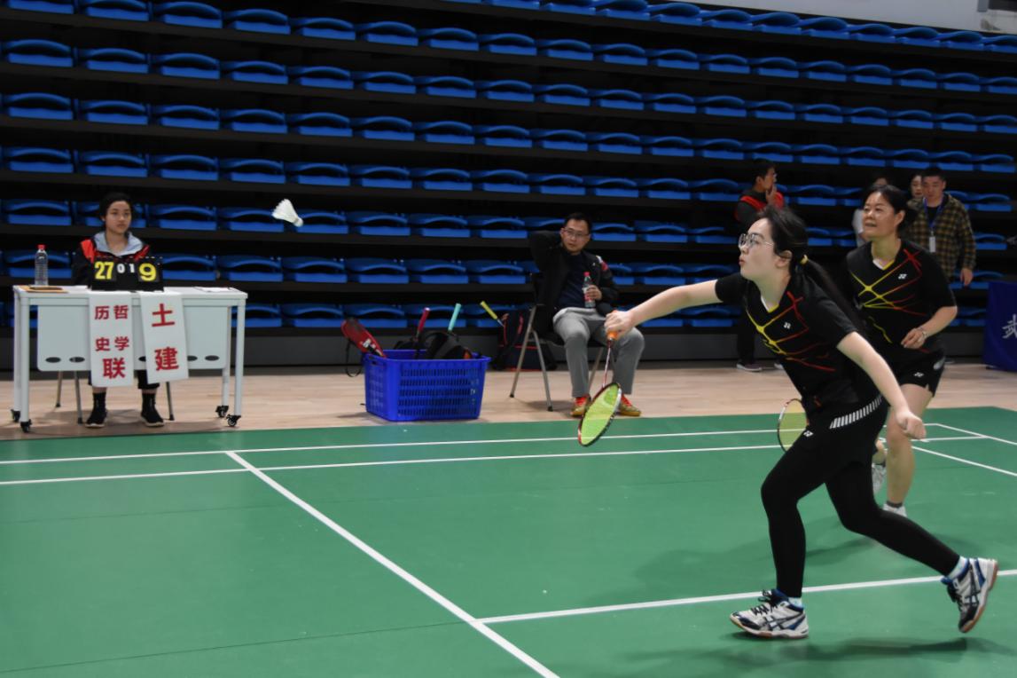 此次活动也得到了全院教职工的热心关注,伴随着一记记精彩的扣杀、劈杀或是巧妙的高远球、吊球,赛场边观战的拉拉队时不时爆发出一阵阵叫好声,赛场内外热情洋溢。场上比赛的队员奋勇拼搏,场下观战的观众鼓掌喝彩,忙着记分的裁判们兢兢业业,群“雄”毕至,少长咸集。