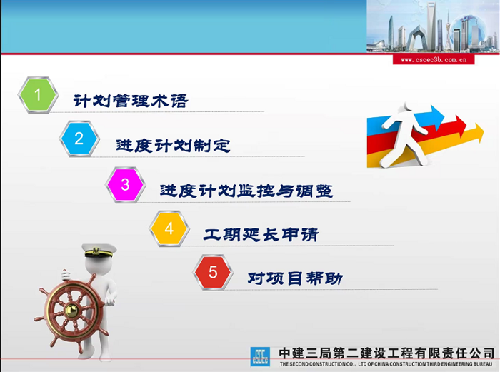 此次宋总结合自身经历围绕计划管理术语、进度计划制定、进度计划监控与调整、工期延长申请以及对项目的帮助五个方面展开。