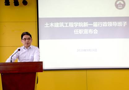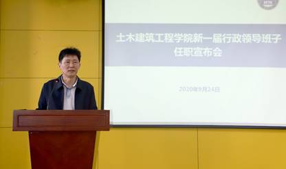 2020年9月24日下午,学院新一届行政领导班子任职宣布会在力学楼四楼报告厅顺利召开。ylzzcom永利总站线路检测副校长李资远、组织部副部长罗春明出席,学院全体教职工参会,学院党委书记雷世富主持。