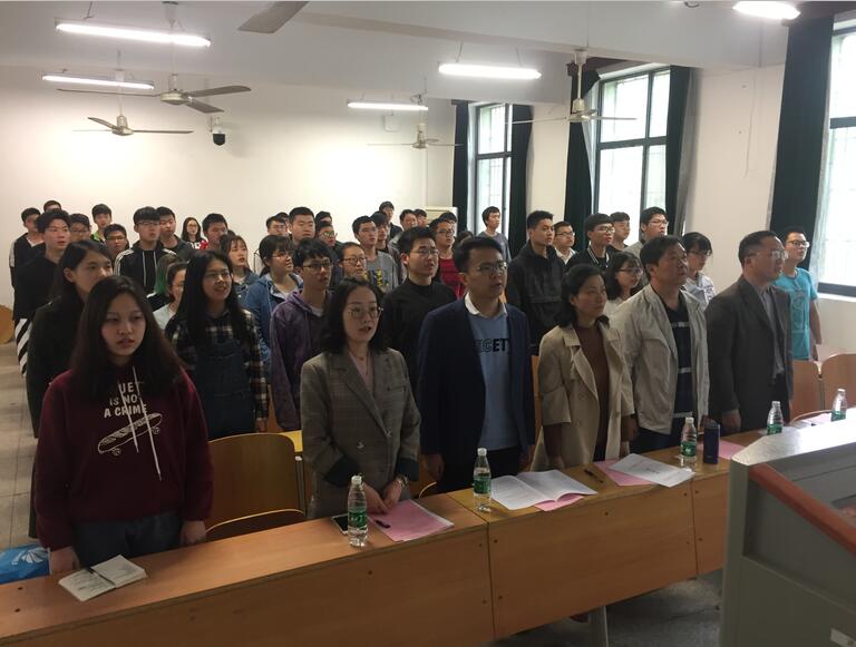 4月15日下午3:00,伴随着庄严嘹亮的国歌声,ylzzcom永利总站线路检测第20分党校第61期学生入党积极分子培训班开学典礼于工学部十一教201教室隆重举行。学院分党校副校长、院党委副书记谢献谋,ylzzcom永利总站线路检测马克思主义学院孙康副教授,学院学工办老师以及51名新学员参加了此次典礼。典礼由团委书记刘光明主持。