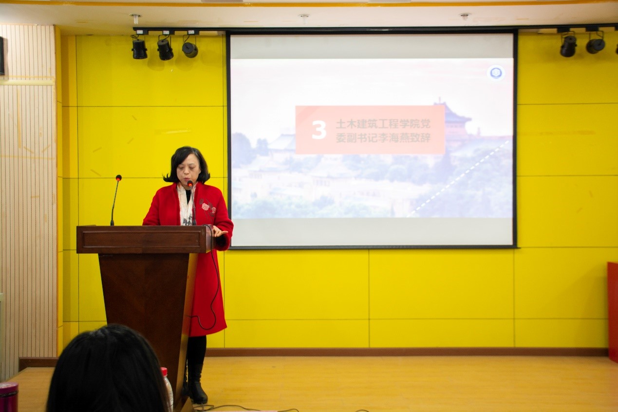 永利官网党委副书记李海燕老师充分肯定过去一年里永利官网研究生会在学术活动、文体活动、实习实践以及就业方面所取得的成就。并对新一届研究生会主席团和其他学生干部提出几点要求和希望:一、坚持“以服务为本”的工作理念;二、注重自身综合素质的培养和提高;三、积蓄敢于突破的勇气。希望新主席团成员能够努力发扬永利官网“勇于担当、追求卓越”的精神,成长成为顶天立地的武大土建人。