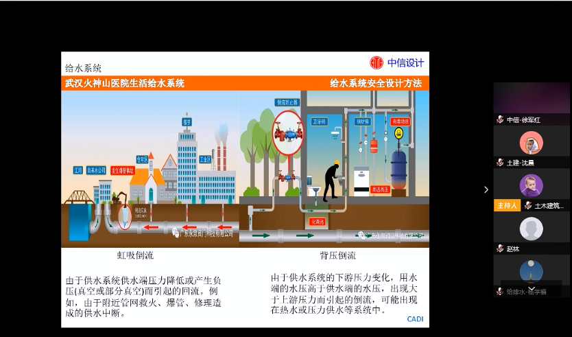 期间,李总非常细致全面地向大家介绍了武汉火神山医院作为应急传染病医院和普通医院的区别,并从专业的角度向大家依次剖析了医院负压病房(隔离病房)平面设计、医院生活给水排水系统的设计。让大家深刻得体会到,作为应对新冠肺炎这种极具传染性疾病的应急医院,火神山医院和雷神山医院的水系统生物安全绝对是整个设计建设过程中的重中之中!